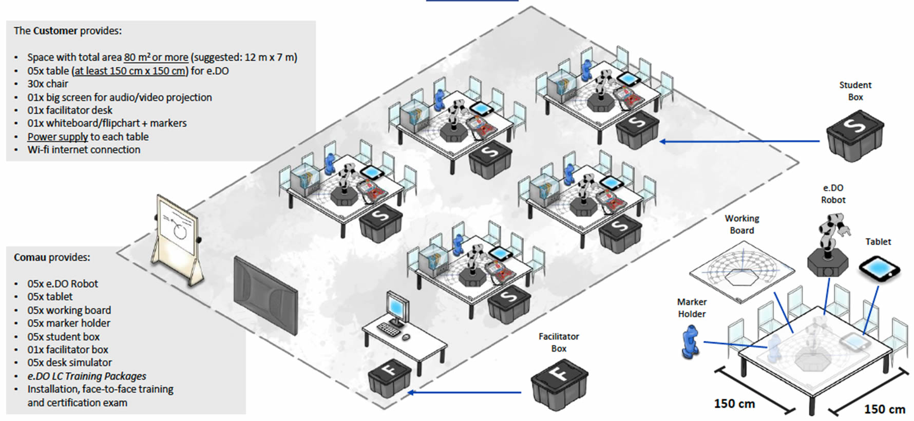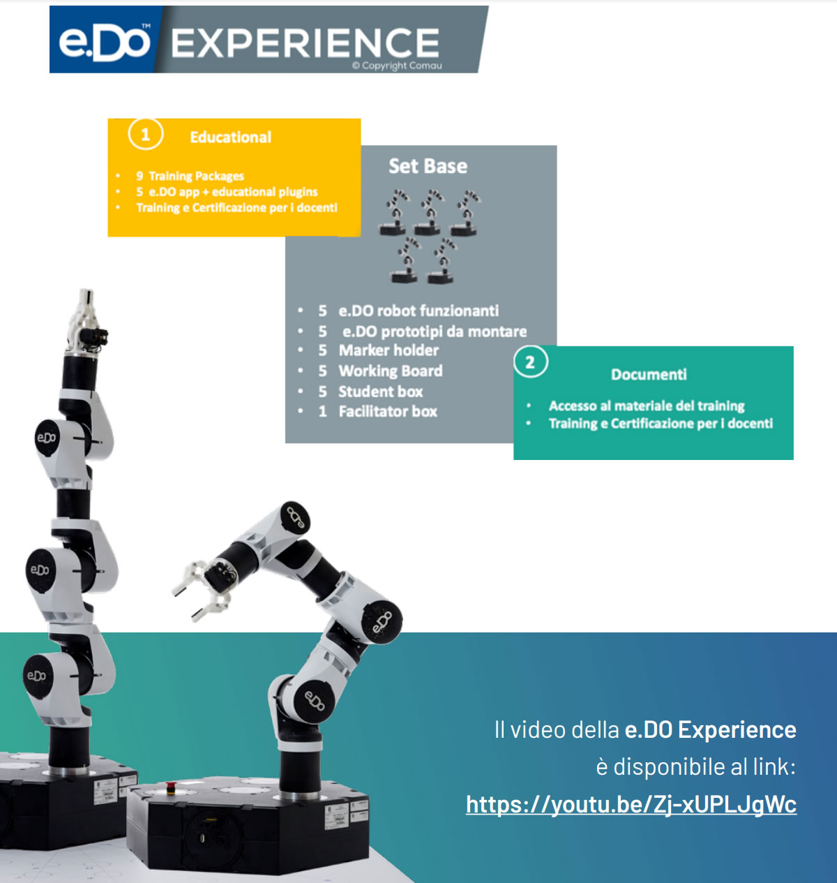 Lo strumento principale dei laboratori è il robot e.DO, un kit robot appositamente progettato e realizzato da COMAU per la didattica da costruire e programmare sotto la supervisione di un insegnante. Tutti i laboratori e.DO COMAU sono condotti da educatori certificati COMAU, coadiuvati da un tutor d’aula.